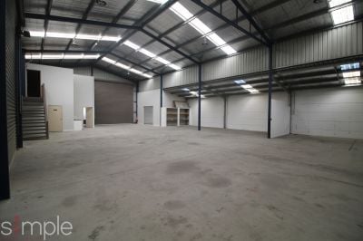 This site offers a functional clearspan warehouse with double roller door and large concrete hardstand.